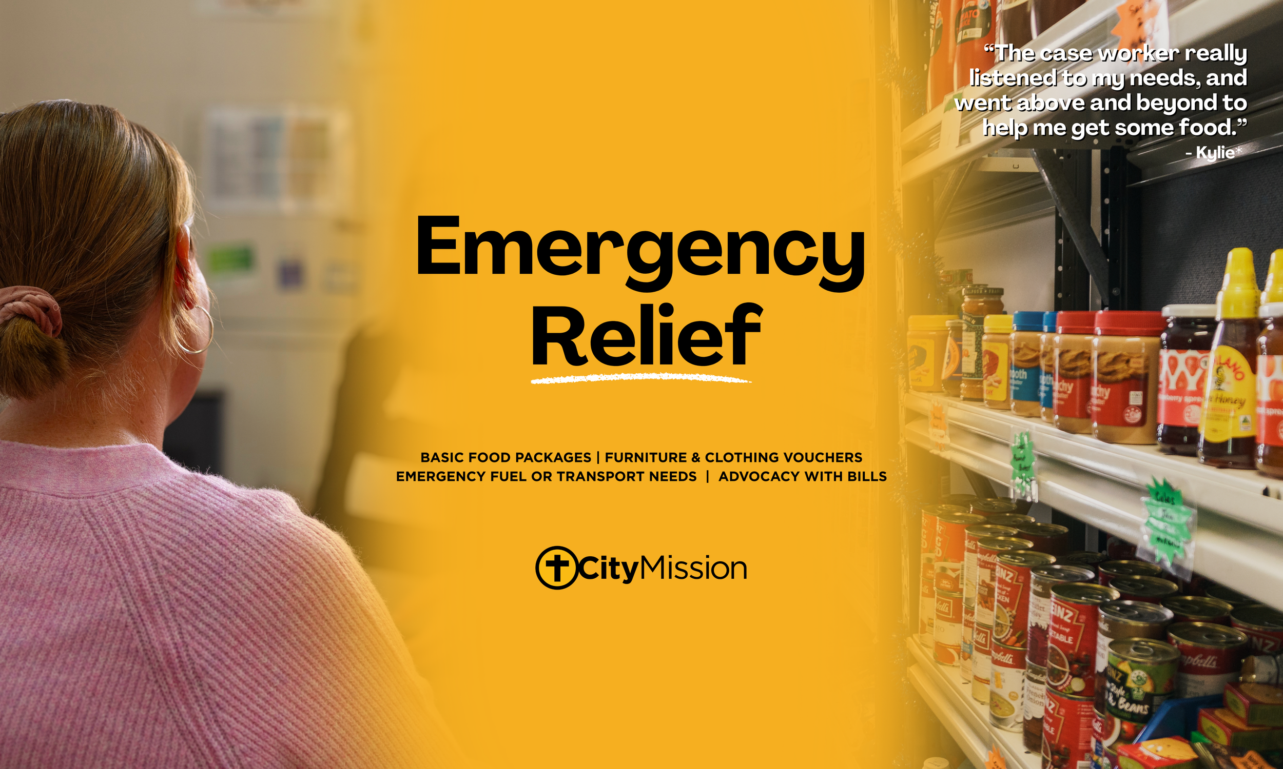Through assessment, caseworkers help with basic food packages, advocacy with electricity and telephone bills, emergency fuel or transport needs.